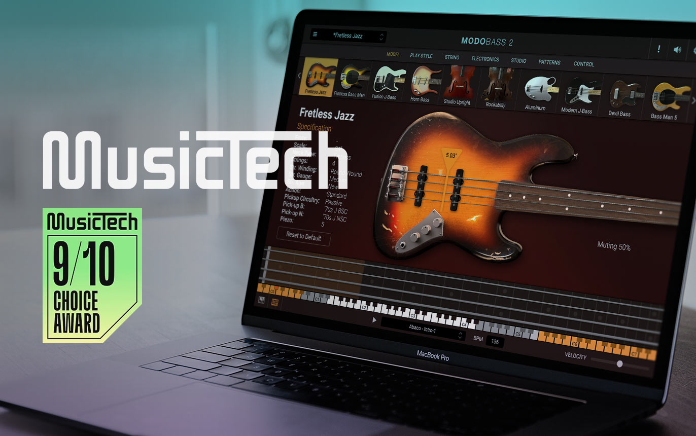 MusicTech recently reviewed IK's MODO BASS 2, giving the expanded virtual bass instrument their MusicTech Choice Award. Summarizing that it features "More than enough options to suit even the most demanding bass aficionado," MusicTech recommended you try MODO BASS 2 for yourself.