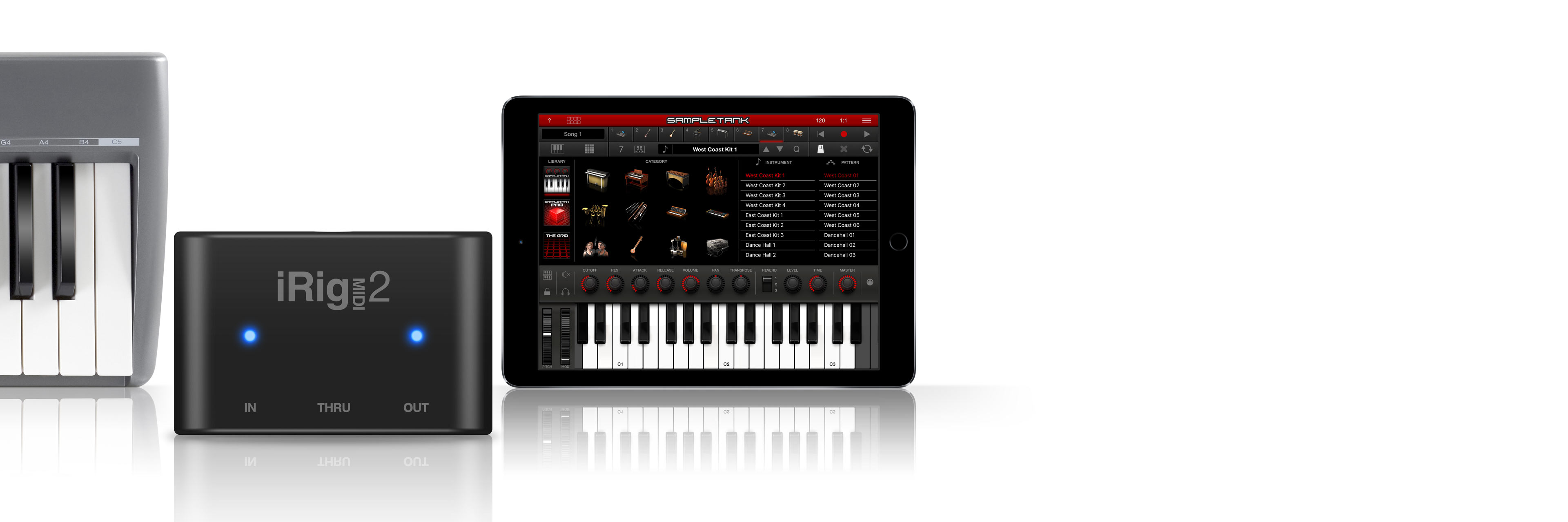 • MIDI IN/OUT LED indicators for at-a-glance monitoring of MIDI data transmission