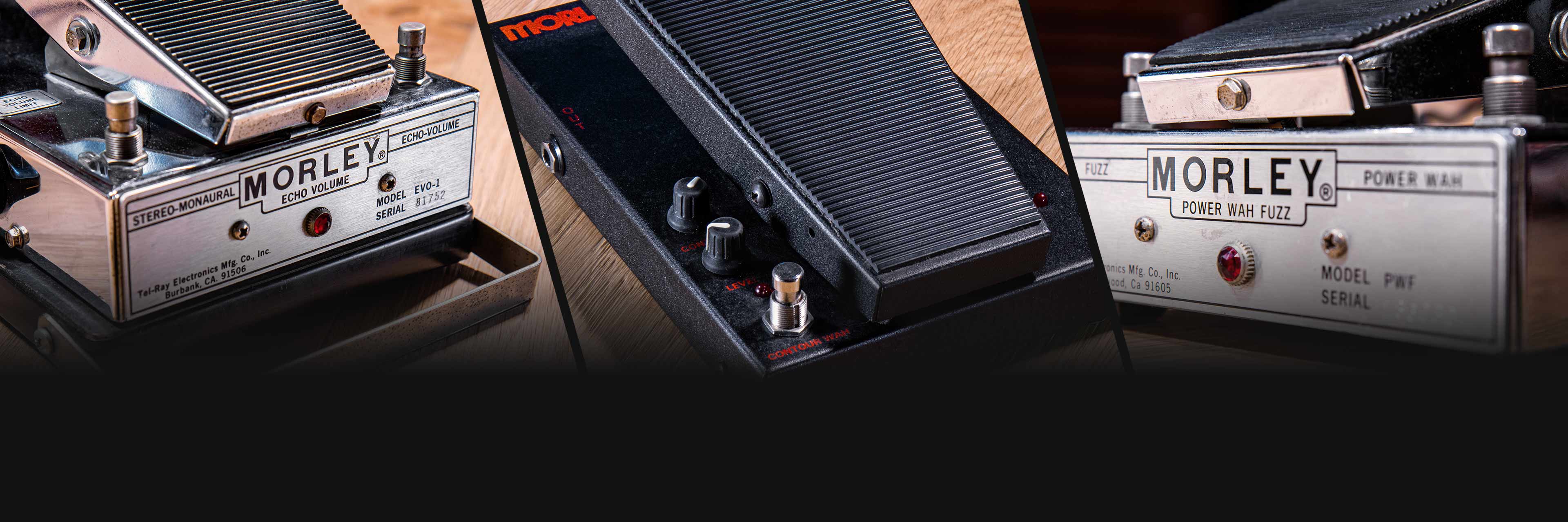 Founded in Los Angeles in the ′60s by brothers Ray and Marvin Lubow, the Morley company has produced innovative wah-wahs, volume pedals, phasers pedals and the original (patented design) Oil Can Delay included here, which is no longer produced. Morley is best known for its wah-wah pedals that were the first to use an electro-optical circuit rather than a potentiometer to control the effect, making them both quieter and smoother to operate. Morley pedals have been used by a wide range of musicians, including Steve Vai, David Gilmour, Geddy Lee, Alex Lifeson, Jerry Garcia and Lee Ritenour.