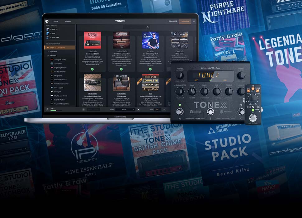 TONEX Collections work seamlessly inside AmpliTube 5. The TONEX amplifier and pedal gear models function just like other AmpliTube amps and pedals. They can be used together to build custom signal chains and save as presets for easy recall. The combination of TONEX and AmpliTube 5 represents the most advanced tone powerhouse on the planet today.
