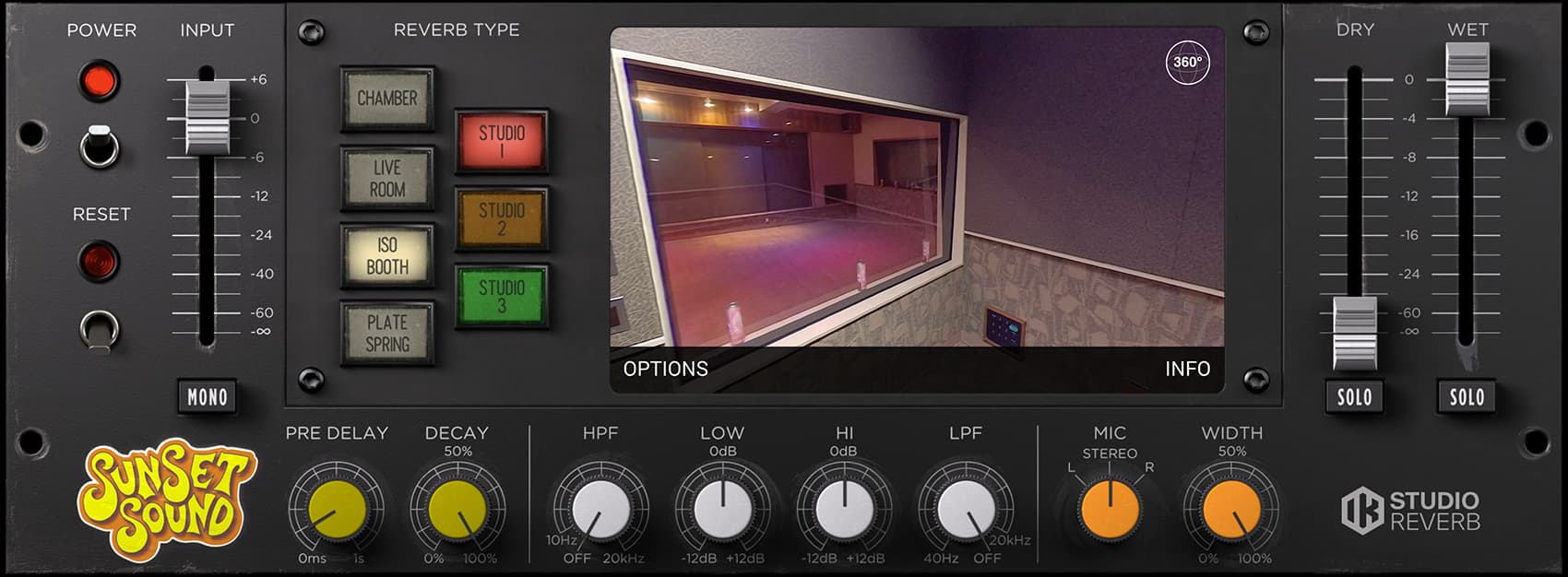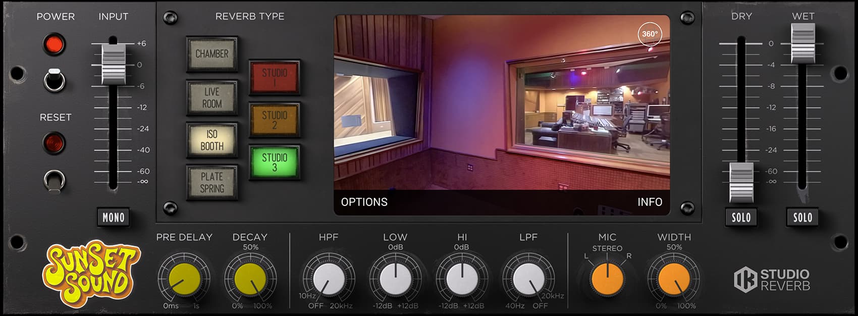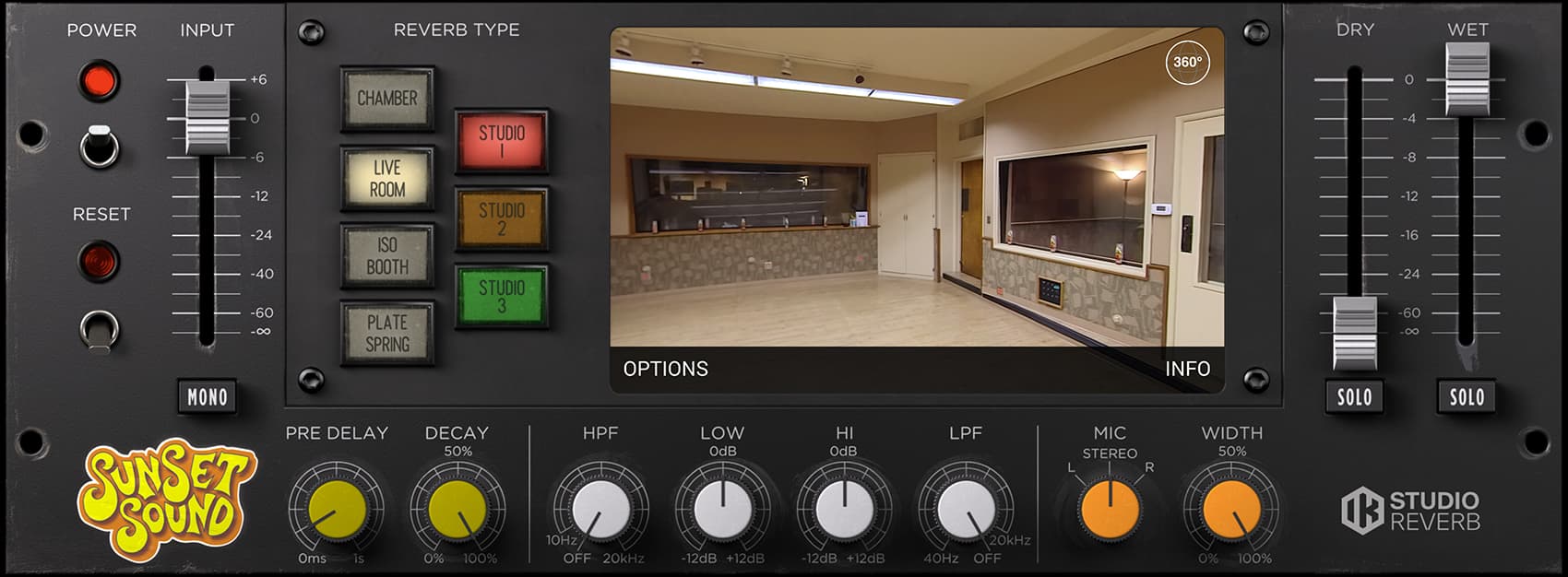 T-RackS Sunset Sound Studio Reverb lets you step inside Sunset Sound studios, capturing the sonic mojo of each one of these echo chambers, live rooms, booths, plates and springs, as well as the unique vibe of their custom consoles and classic mic collection.