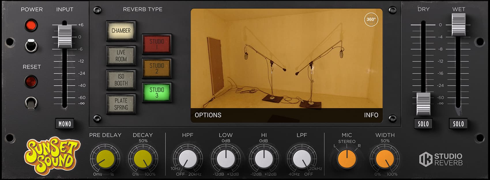- Pre Delay & Decay Time controls, EQ and mic options
