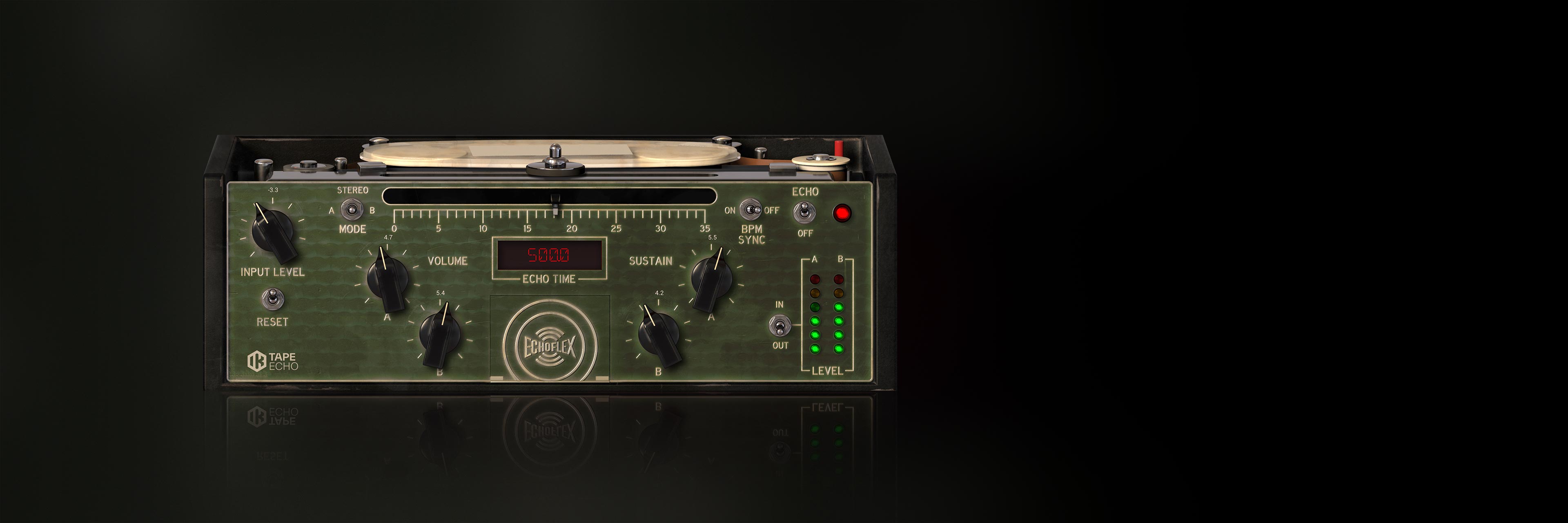 The Tape Echo is a faithful recreation of the highly sought after Echoplex EP3 tape delay. The original unit made its appearance in 1969 and was immediately adopted by musicians and guitar players as the standard for delay effects.