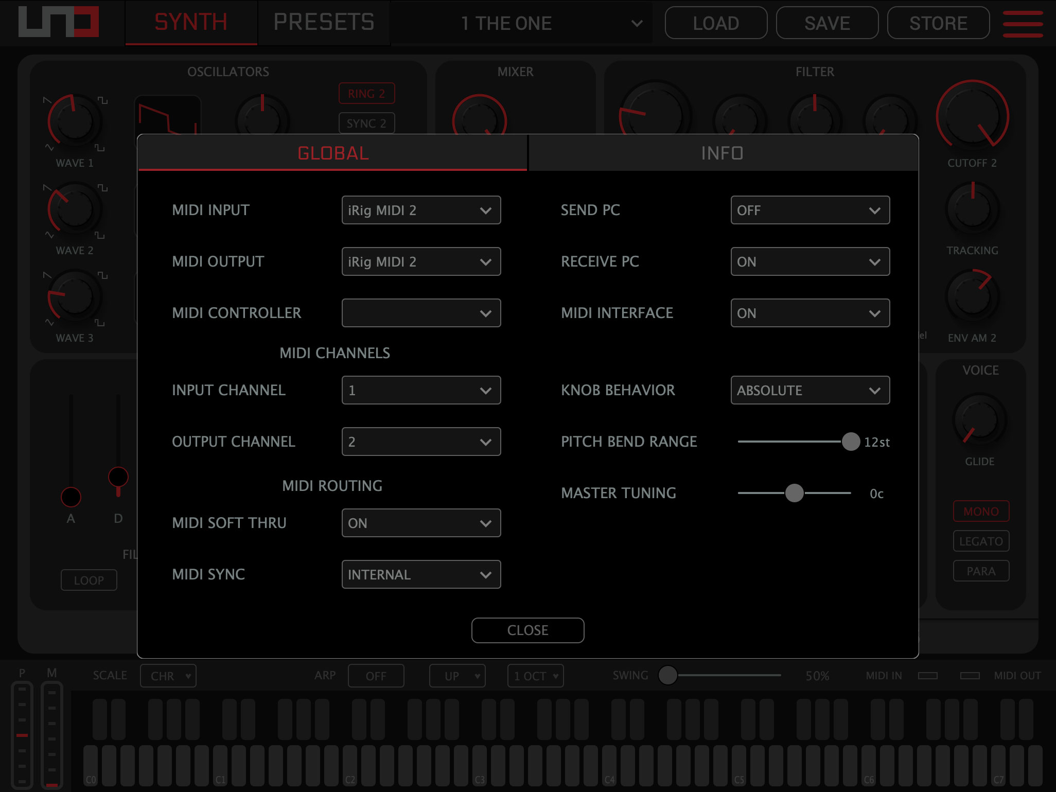The Editor makes it a breeze to precisely configure UNO Synth Pro for integration into your existing rig. The Global Settings menu provides a convenient way to map MIDI routings, letting you easily assign communication across both the MIDI DIN ports and USB. Connect outboard gear and virtual apps instantly. And use UNO Synth Pro as both a MIDI interface and MIDI controller.