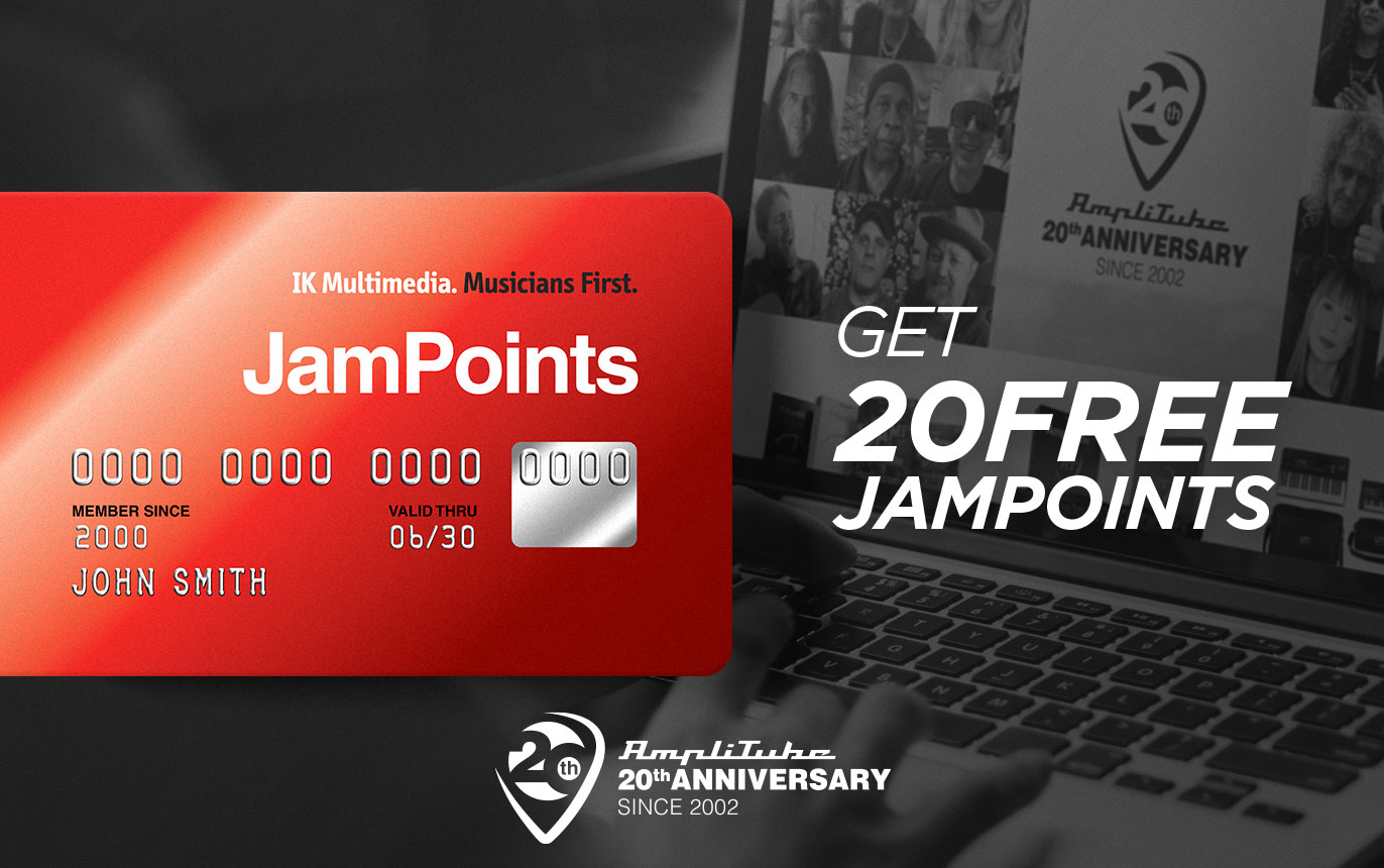 AmpliTube has come a long way since 2002. We've marked many milestones on the road to perfecting virtual amps and effects. Now let's celebrate the 20 years of AmpliTube with 20 FREE JamPoints!