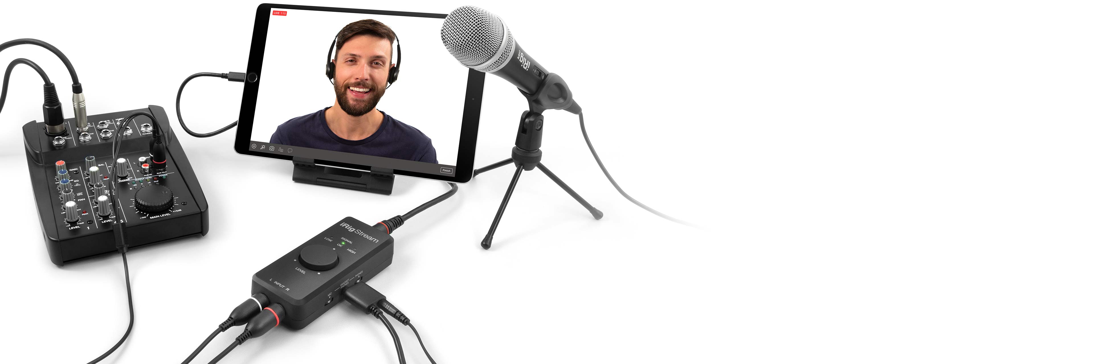 2 line-level RCA inputs are perfect to connect DJ and multi-channel mixers, but are also great for keyboards, synth & drum machine setups, and more. Whether you’re looking to stream your DJ set, record band practice, jam along with your favorite song, or even host a podcast, iRig Stream lets you connect a massive range of gear.