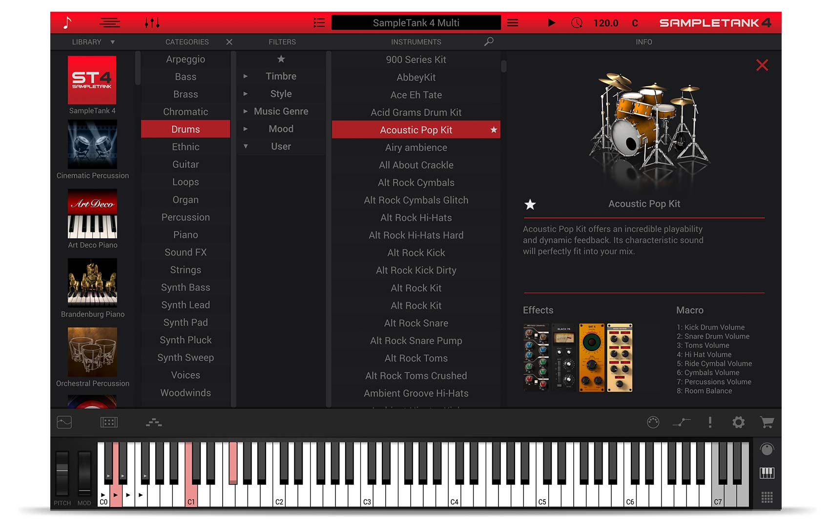 Inspiring new sounds, powerful sound design features, advanced groove creation and tour-ready stage optimization. SampleTank 4 will take you wherever you want to go.