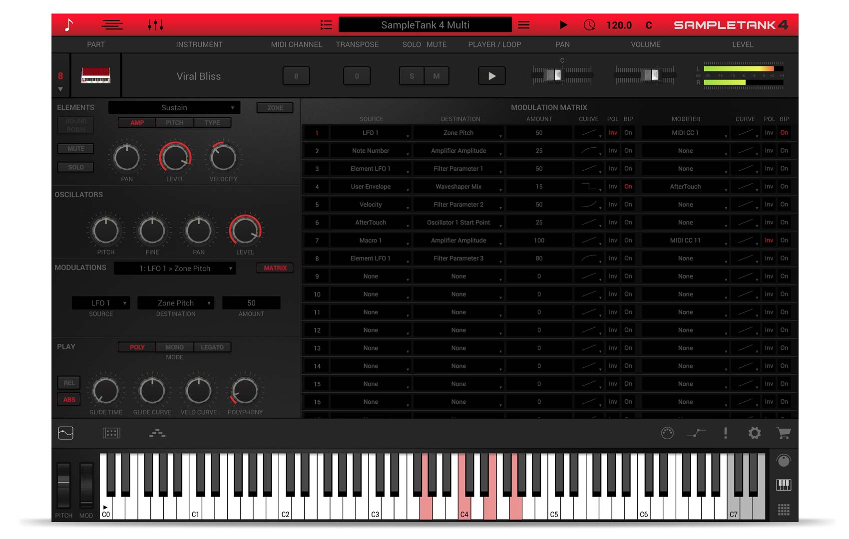 SampleTank 4 also adds a new effects modulation matrix, giving you more ways to modulate and shape your sound than ever before. Map any parameter of the effects to the source of your choice, adjust curves and levels, and more.