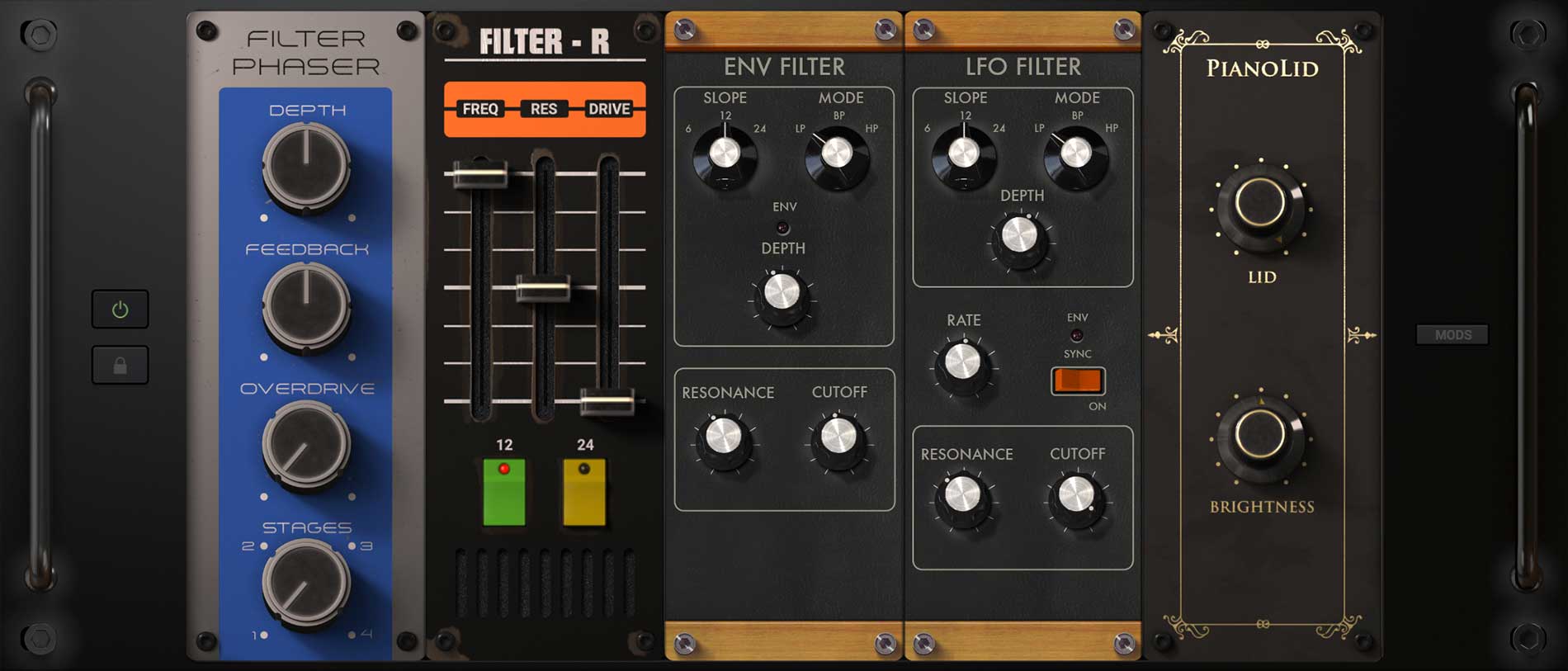 New recordings of famous electric piano sounds — tine-based, reed-based and based on FM synthesis — all from perfectly maintained instruments of the most desirable models and years. A unique sampling process gives you control over the harmonic content so you can tilt the character without touching an EQ.