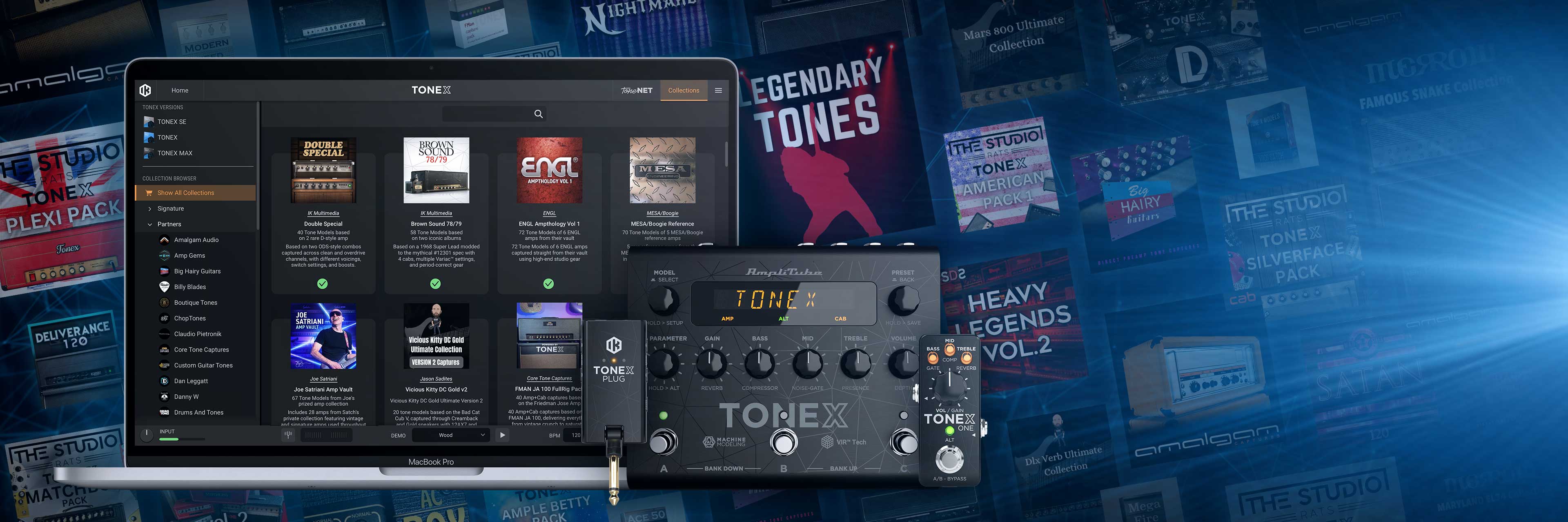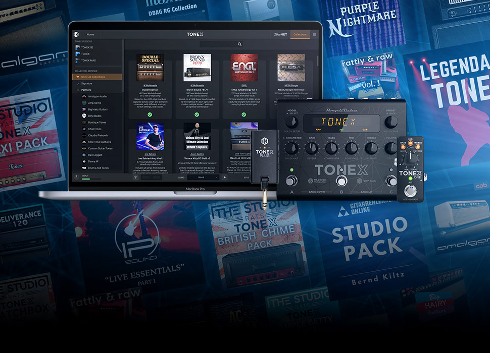 TONEX Collections work seamlessly inside AmpliTube 5. The TONEX amplifier and pedal gear models function just like other AmpliTube amps and pedals. They can be used together to build custom signal chains and save as presets for easy recall. The combination of TONEX and AmpliTube 5 represents the most advanced tone powerhouse on the planet today.