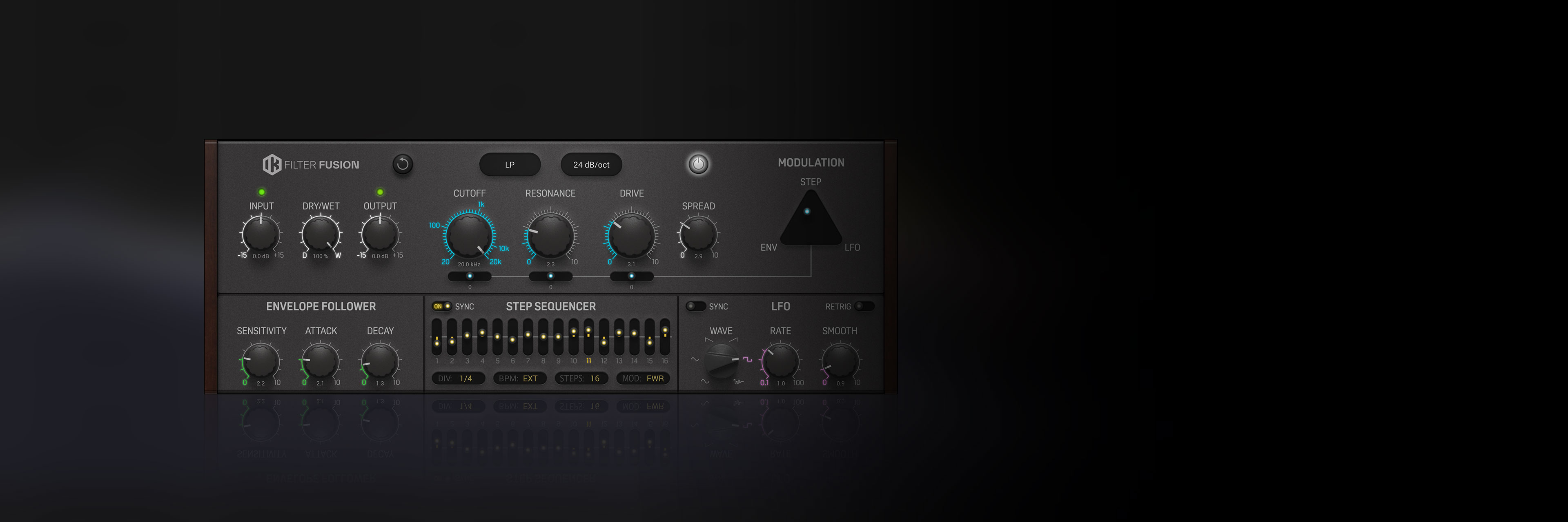 • Step Sequencer: Create evolving modulation patterns with individual step sliders, tempo sync options and versatile operating modes.